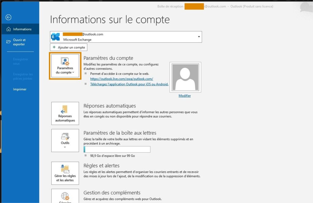 - retourner dans Paramètres du compte